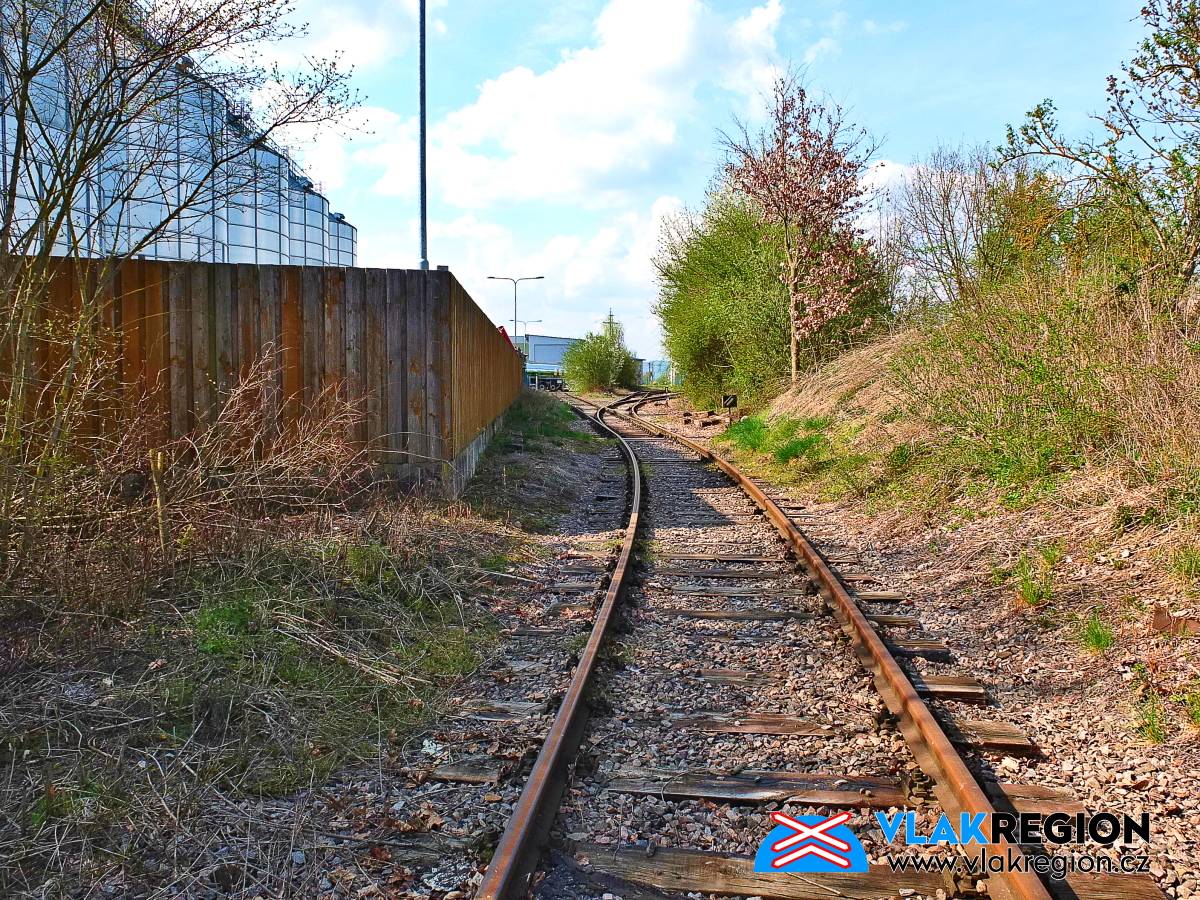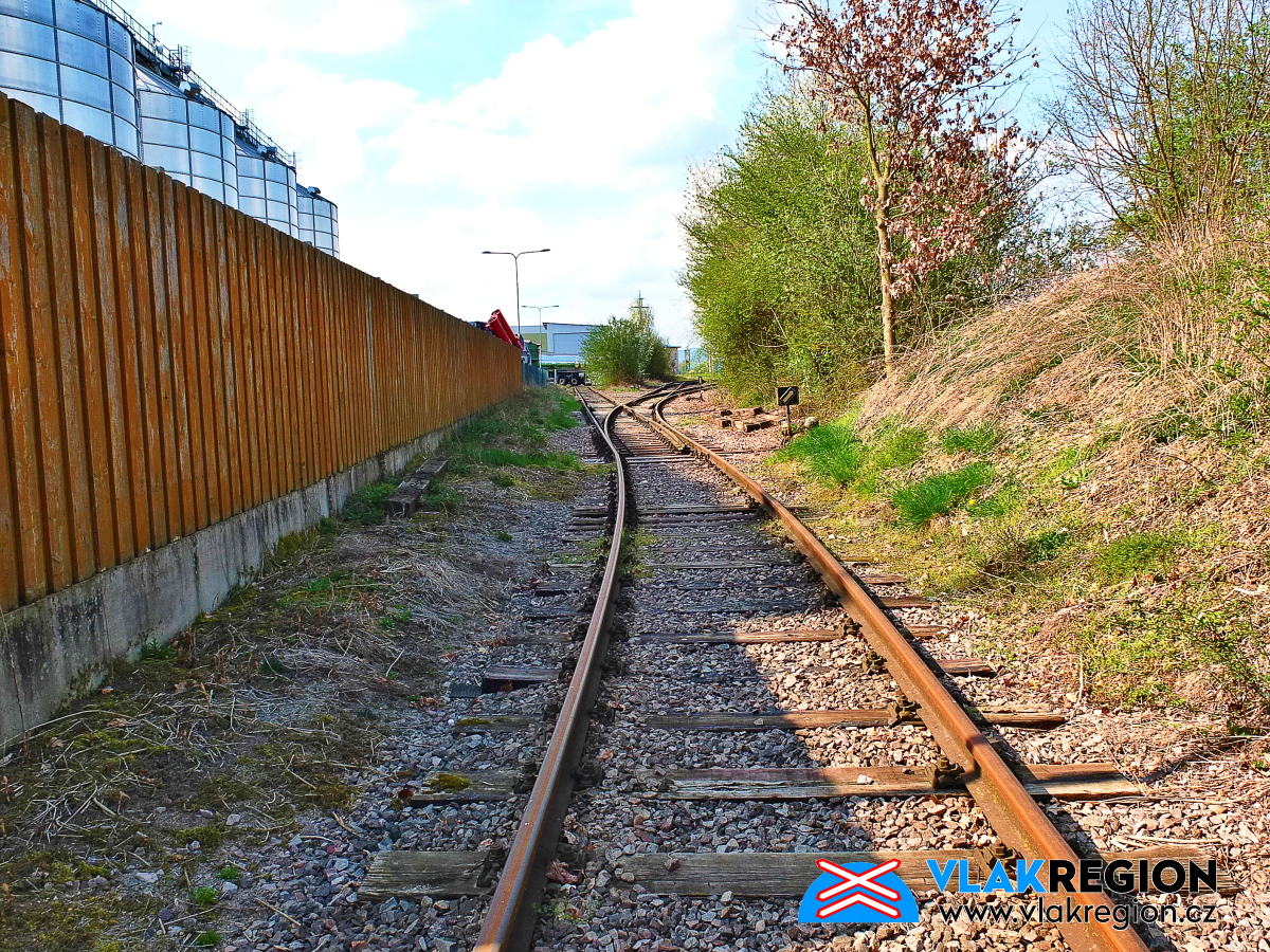Staré Místo u Jičína - vlečka pokračuje kolem výtopny obloukem (4/2025)
