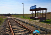 Pohled na zastávku od přejezdu, vlevo strážní domek č.21 (9/2015)